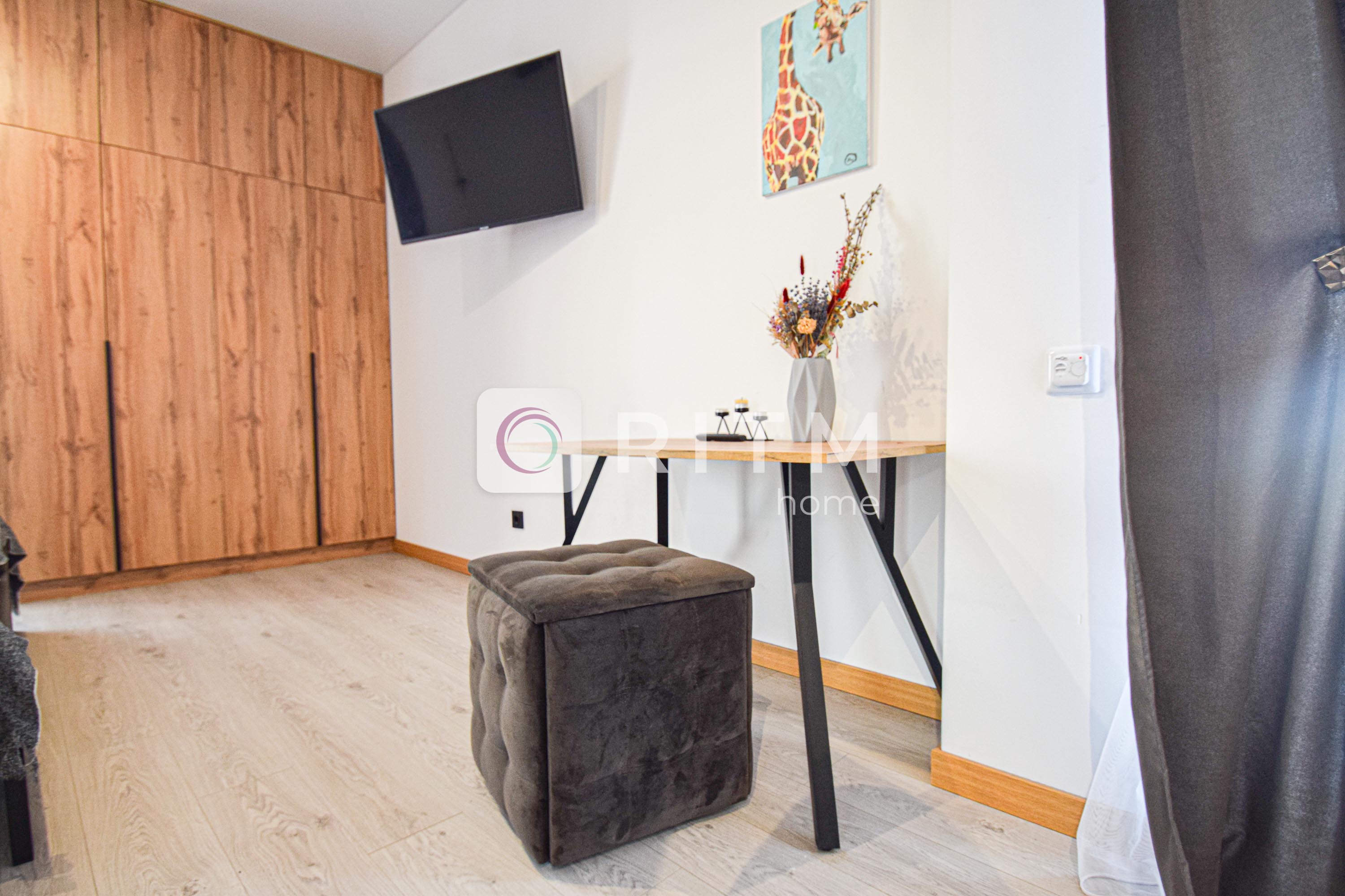 Квартира має продумане планування, що дозволяє раціонально використовувати простір. Світла кімната облаштована двоспальним ліжком, місткою шафою-купе для зберігання речей та телевізором для вашого відпочинку. Встановлений кондиціонер, який забезпечує комфортну температуру як влітку, так і в міжсезоння.