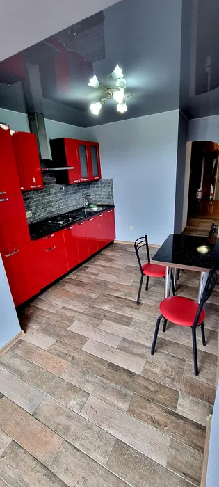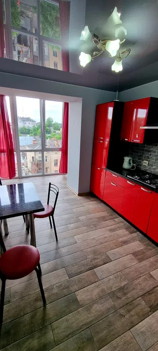 Кухня обладнана шафами для посуду та необхідною побутовою технікою – холодильник, плита, духовка, мікрохвильова піч, електрочайник, витяжна вентиляція тощо. А також має зручну обідню зону.