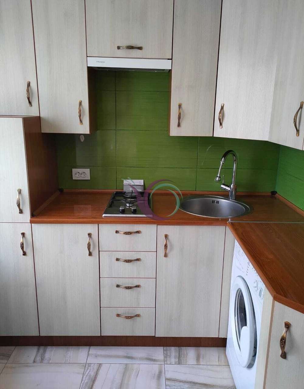 Кухня обладнана необхідною технікою. У компактній ванній кімнаті є пральна машина.