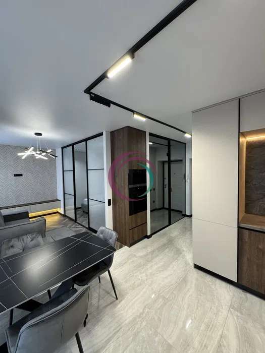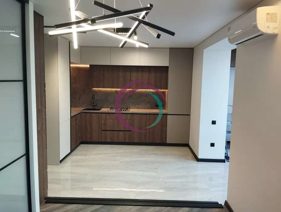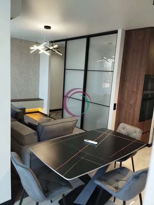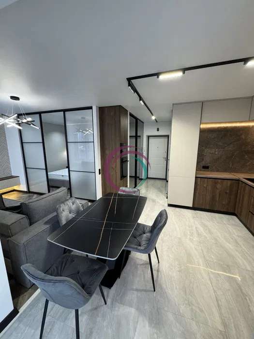 Компактна квартира у затишному районі міста. Вітальня вдало розділена на зони – для відпочинку та для зустрічей з гістьми.
