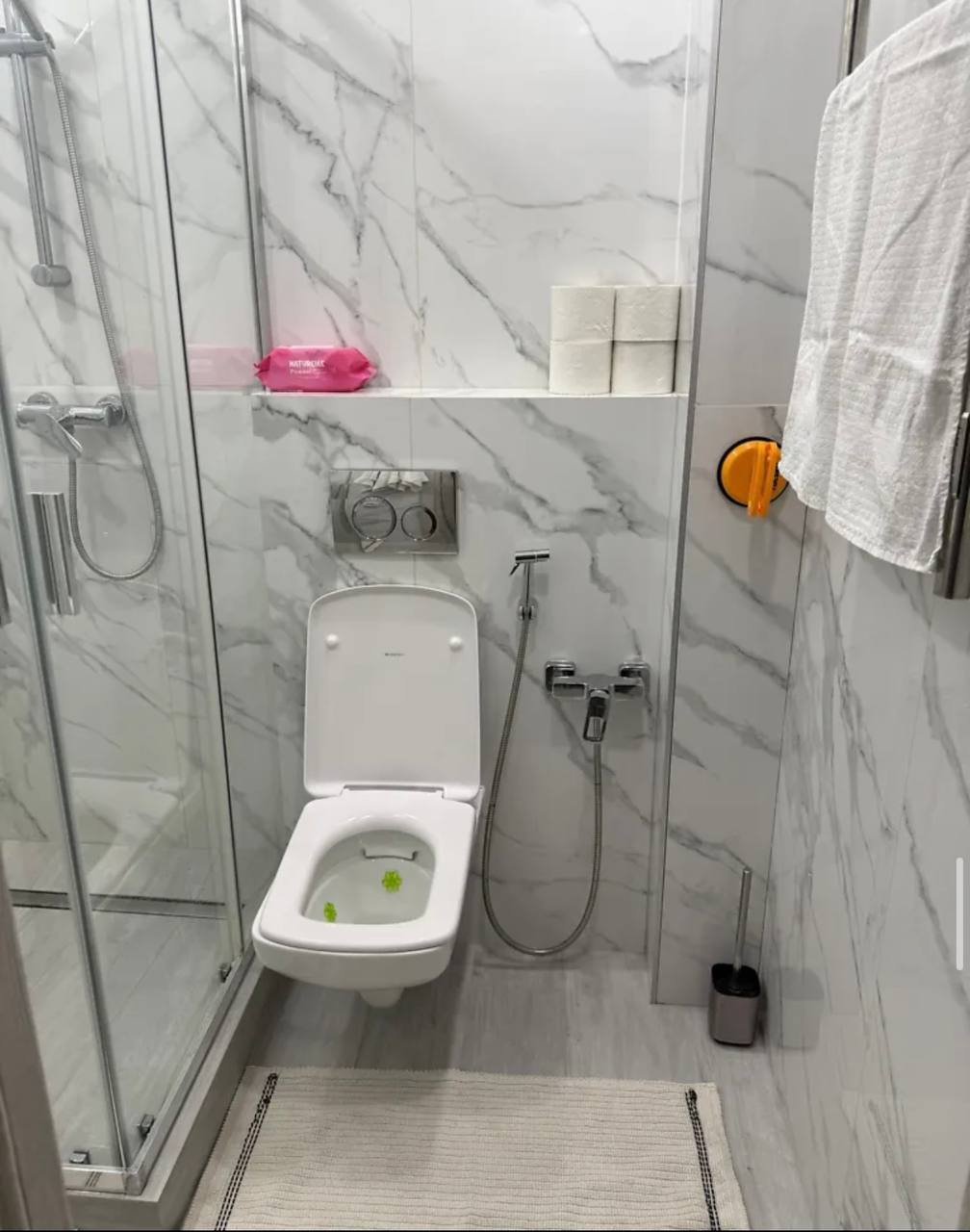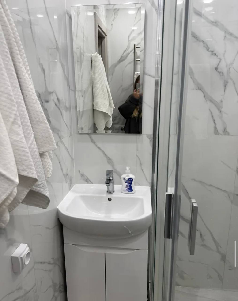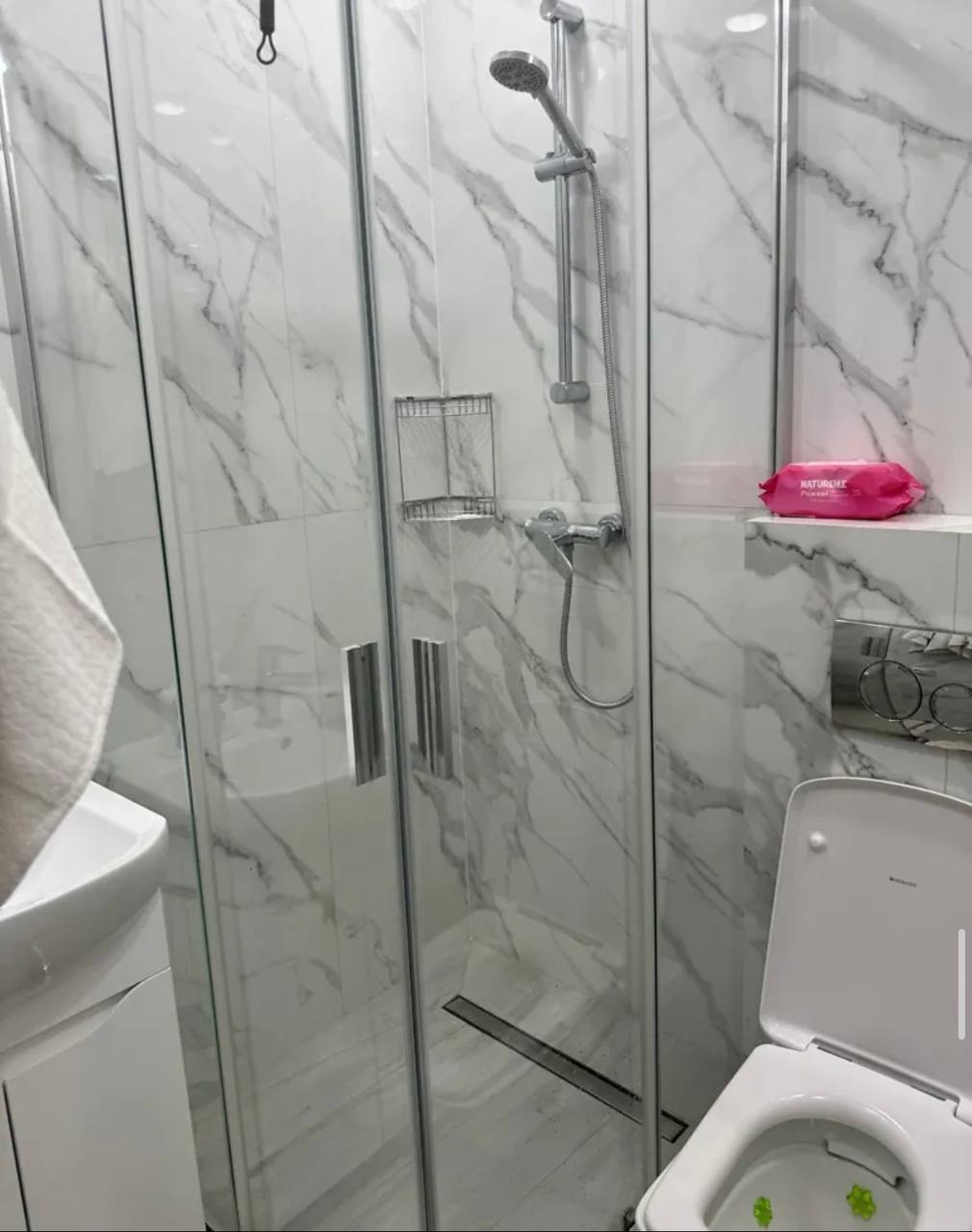 Кухня обладнана необхідною технікою. У компактній ванній кімнаті є пральна машина та душова кабіна.