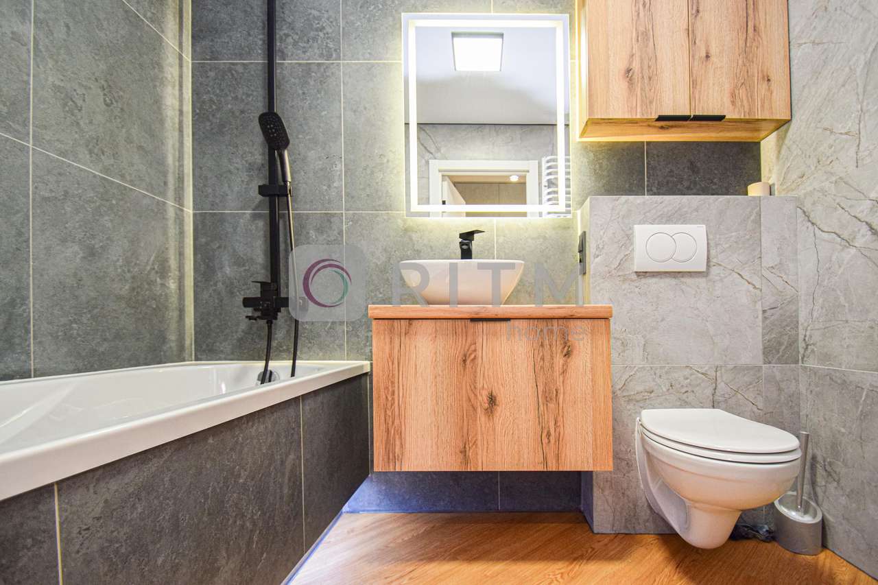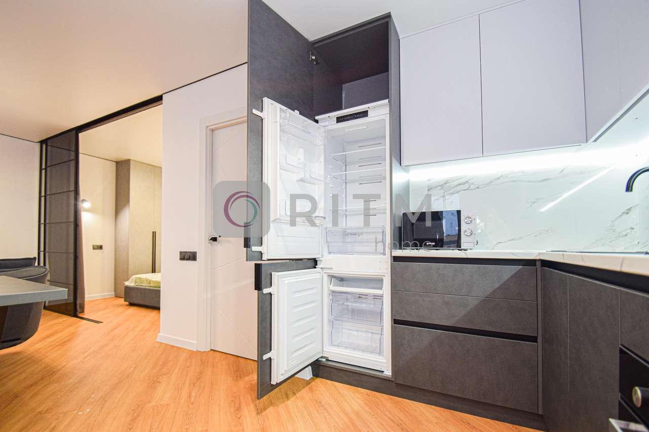 Дизайнерський ремонт: інтер’єр виконаний у сучасних тонах з використанням якісних матеріалів.