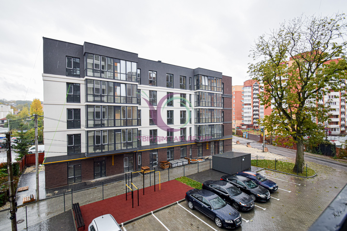 Доглянута територія ЖК має дитячий та спортивний майданчики, також передбачені місця для гостьового паркінгу.