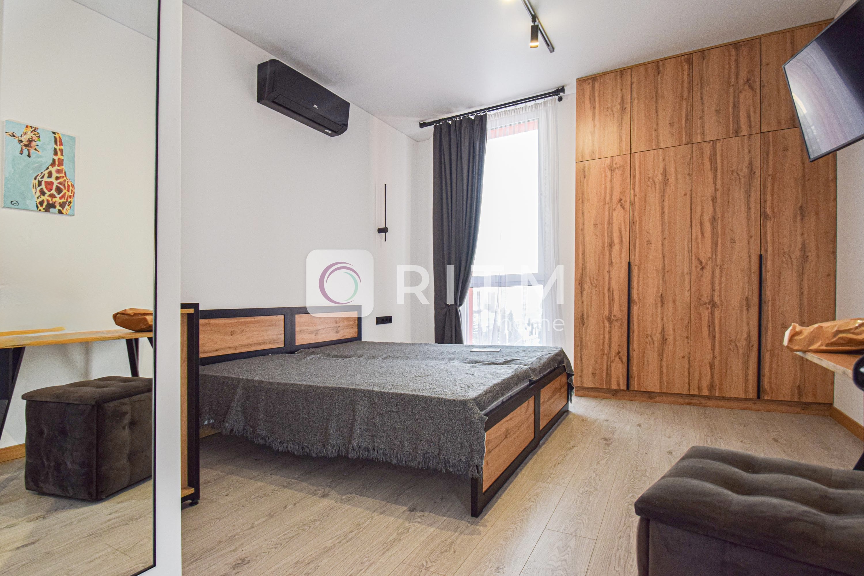 Квартира має продумане планування, що дозволяє раціонально використовувати простір. Світла кімната облаштована двоспальним ліжком, місткою шафою-купе для зберігання речей та телевізором для вашого відпочинку. Встановлений кондиціонер, який забезпечує комфортну температуру як влітку, так і в міжсезоння.