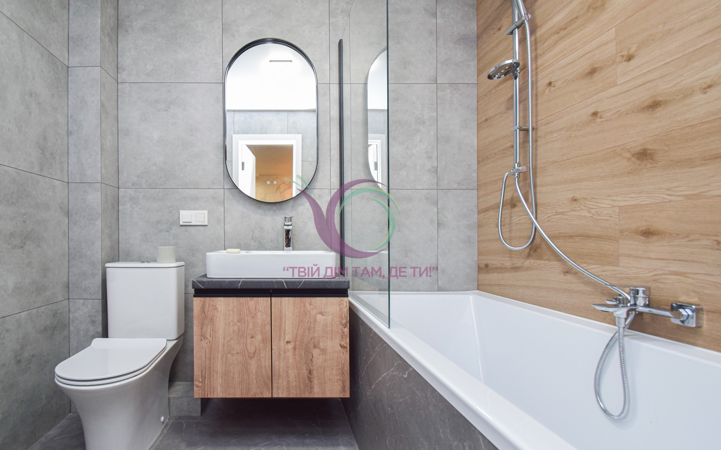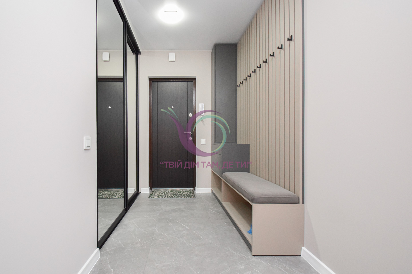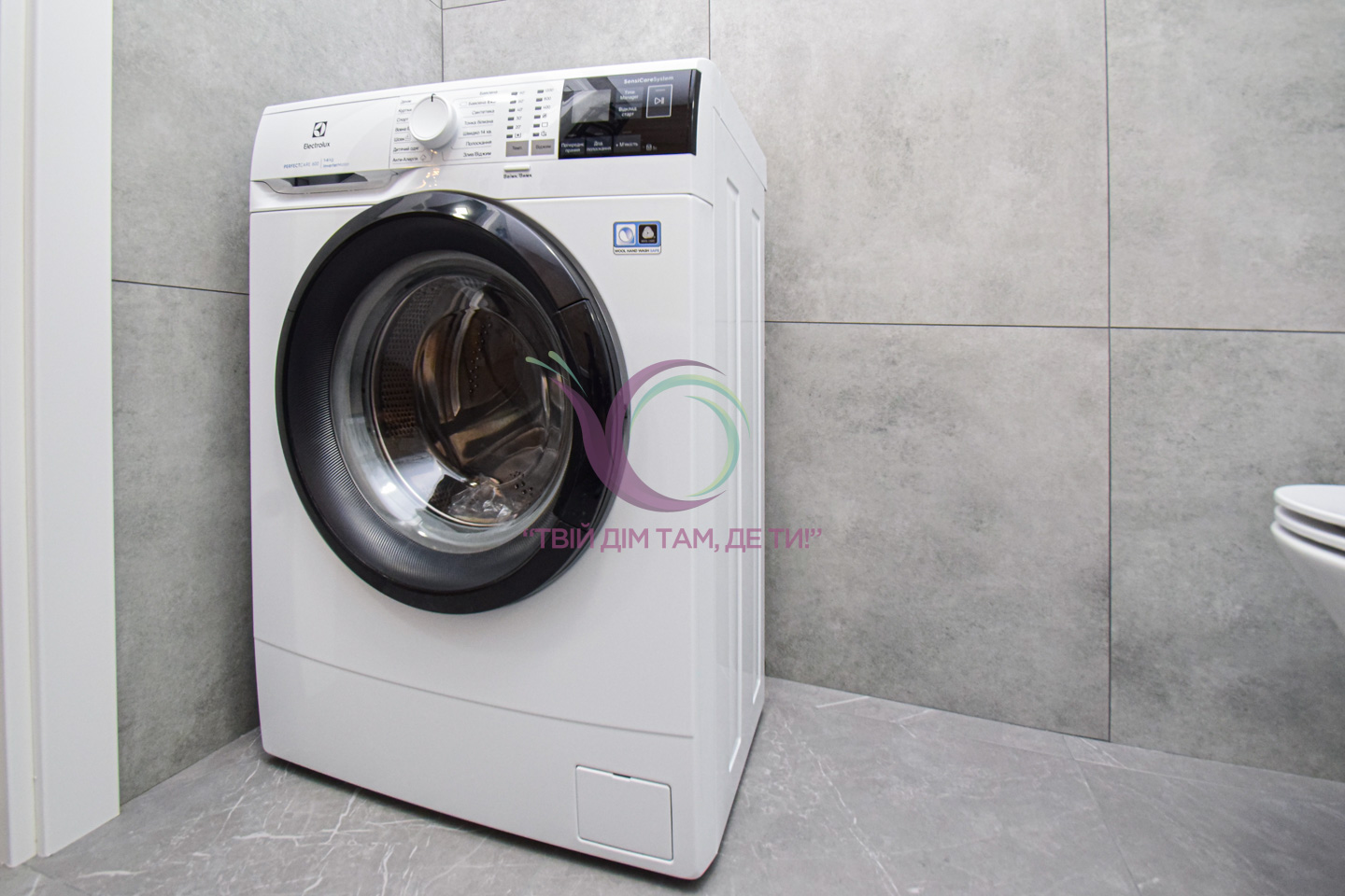 Квартира укомплектована побутовою технікою, гардеробною та місткими шафами для зберігання речей, зручним диваном та усім необхідним для комфортного тривалого проживання. Санвузол має якісну сантехніку.
