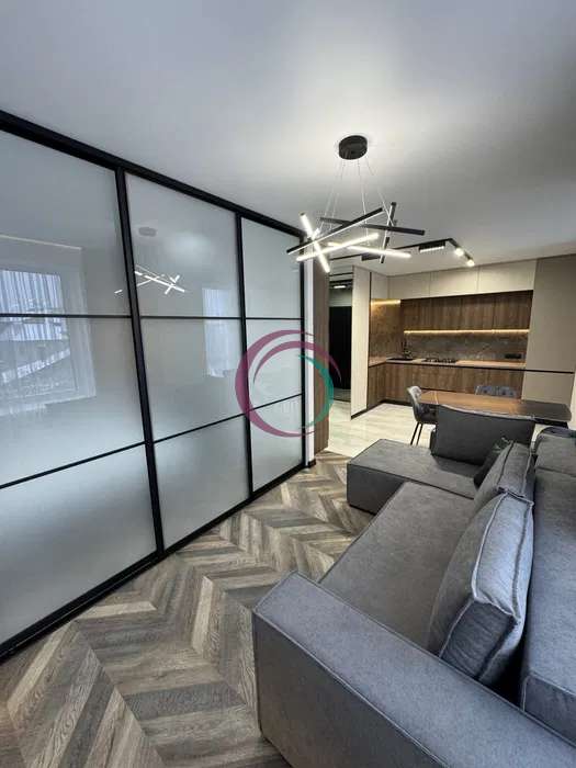 Компактна квартира у затишному районі міста. Вітальня вдало розділена на зони – для відпочинку та для зустрічей з гістьми.