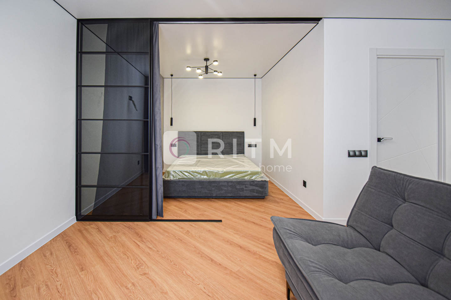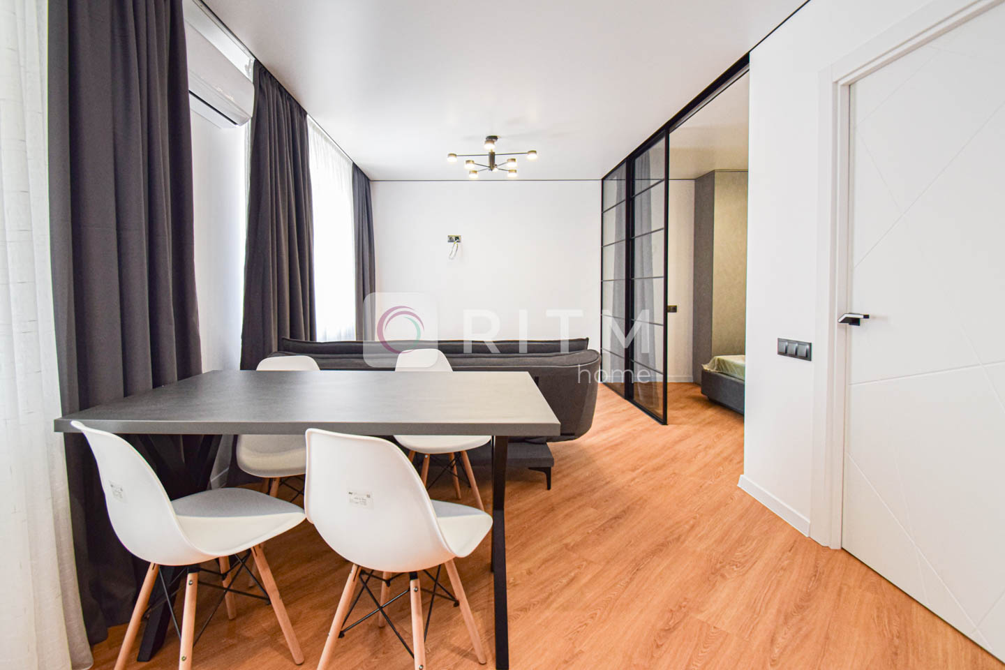 Дизайнерський ремонт: інтер’єр виконаний у сучасних тонах з використанням якісних матеріалів.