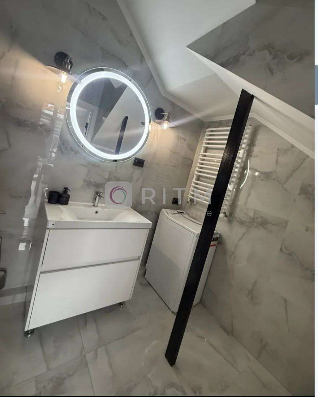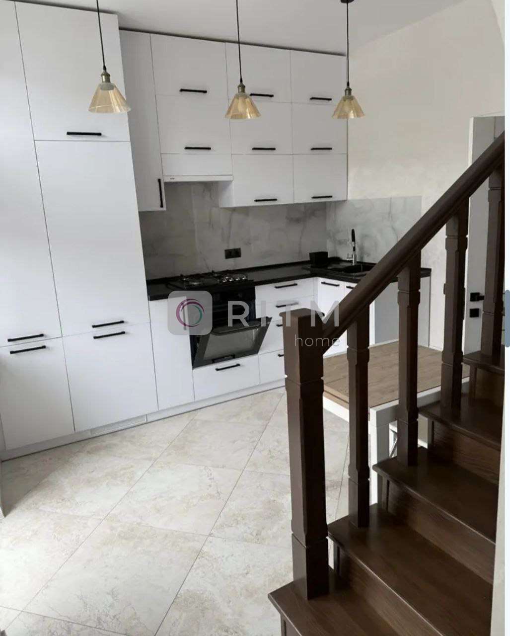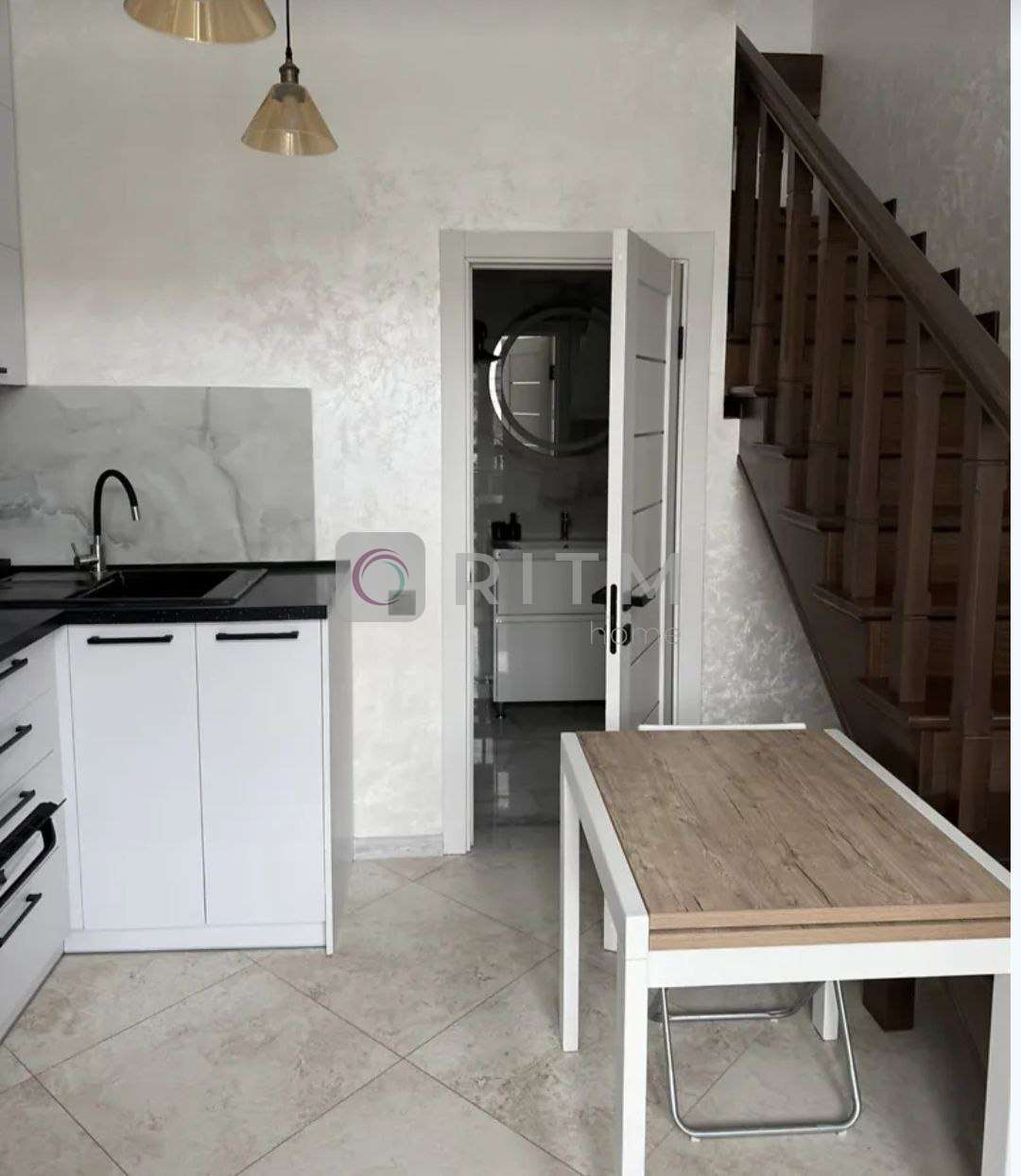Квартира має зручне планування на двох рівнях, що створює відчуття приватного будинку. На першому рівні — простора кухня та вітальня для відпочинку і зустрічей з друзями, на другому — затишна спальня зона. Великі вікна наповнюють помешкання природним світлом, що додає тепла та комфорту.